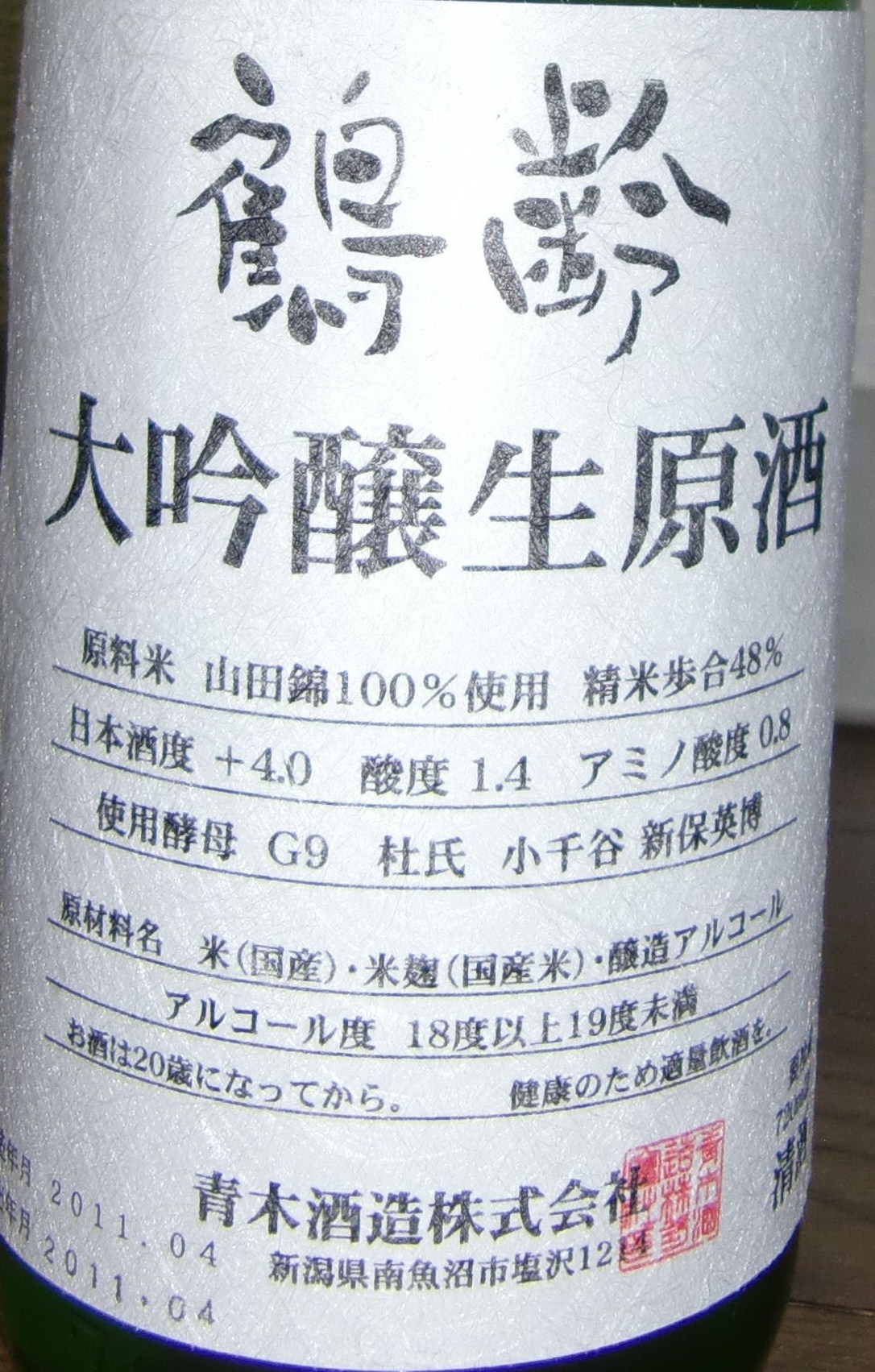 まぁということで、今日の日本酒これ1本は…「鶴齢、大吟醸生原酒」